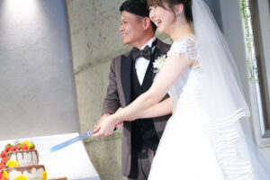 お二人一緒にケーキ入刀をして頂きました♪