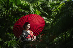 6000坪の広大な緑を背景に、純白のウェディングドレスは驚くほど美しくコントラストを描きます。特に独立型神殿「洗心亭」付近や「Kyora」の前での撮影は、和洋折衷のモダンな雰囲気で、一生モノの写真が残せます。