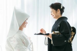 お母様から新婦様へ紅をさす儀で、